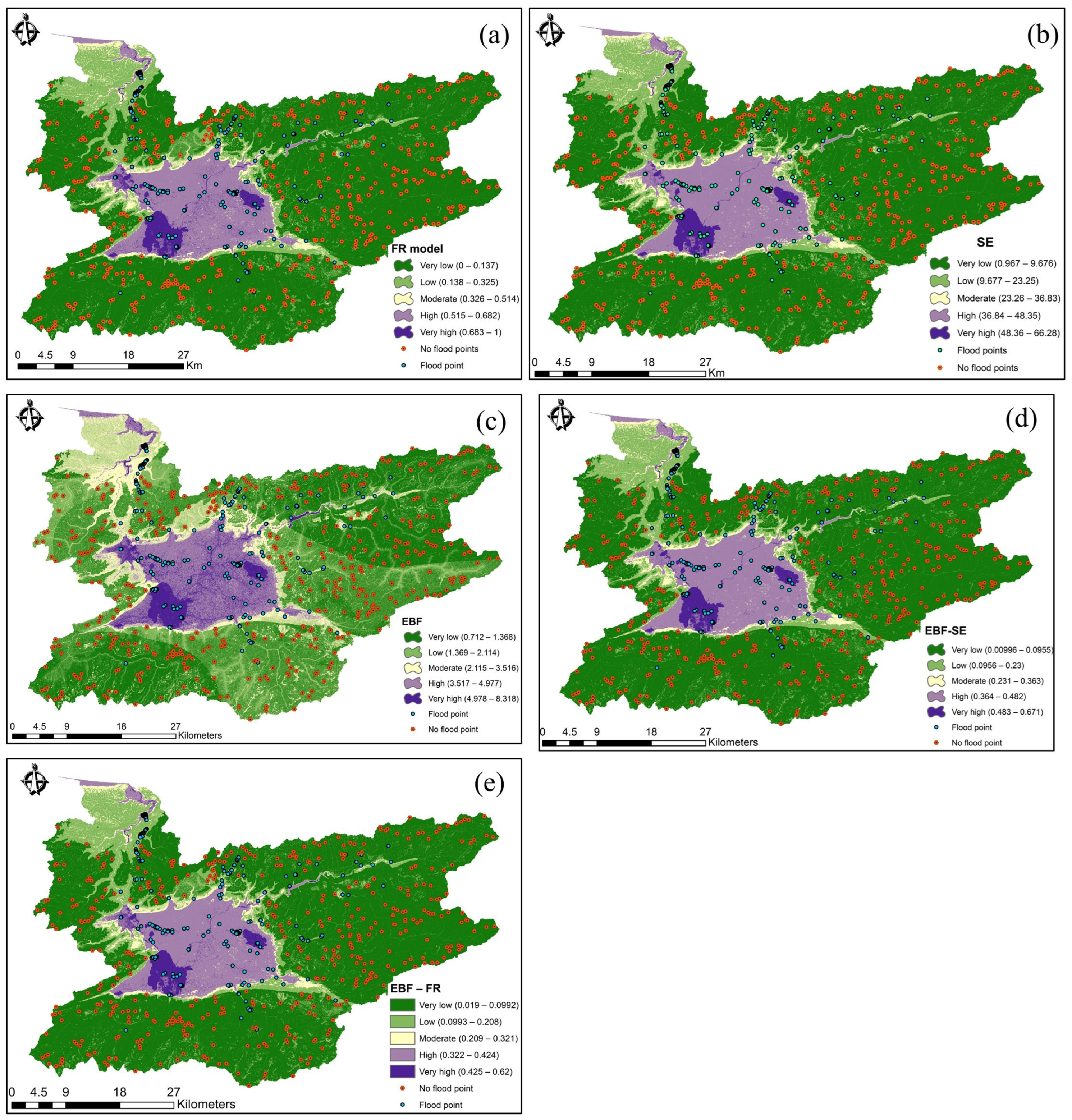 - Saha, S.; Sarkar, D.; Mondal, P. Efficiency exploration of frequency ratio, entropy and weights of evidence-information value models in flood vulnerabilityassessment: A study of raiganj subdivision, Eastern India. Stoch. Environ. Res. Risk Assess. 2022, 36, 1721–1742. [Google Scholar] [CrossRef]
