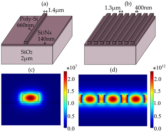 - Kita, D.M.; Michon, J.; Johnson, S.G.; Hu, J. Are Slot and Sub-Wavelength Grating Waveguides Better than Strip Waveguides for Sensing? Optica 2018, 5, 1046. [Google Scholar] [CrossRef]