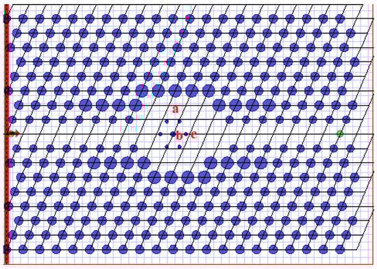 The line defect is created in this design structure for the proper transmission of the optical signal. Along with this line defect, point defect is also introduced in this design structure. The radius of point defect a is 0.2 μm. the radius of point defect b is 0.08 μm and for c point defect the radius is 0.05 and lattice constant is 0.4 μm. The other parameters of the design structure are shown in Table 2.