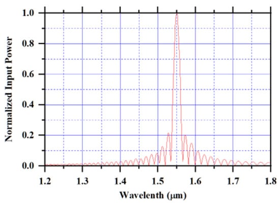 A photonic crystal is the periodic arrangement of two dielectric materials having different refractive indexes. The periodic arrangement of two different dielectric materials is like that of atoms of two different materials in the extrinsic semiconductor [,,]. The optical signal transmission through this photonic structure is defined by the photonic crystal’s essential characteristics, i.e., photonic bandgap (PBG). The photonic bandgap is the region where the probability of having photons is significantly less. If the photons are excited in this region, the photon (optical signal) can travel easily without any interaction. The wavelength of this region is calculated by the Equation (6) [,]