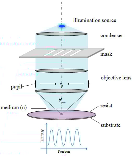 - Liu, A.C.; Lin, B.J. A study of projected optical images for typical IC mask patterns illuminated by partially coherent light. IEEE Trans. Electron Devices 1983, 30, 1251–1263. [Google Scholar] [CrossRef]