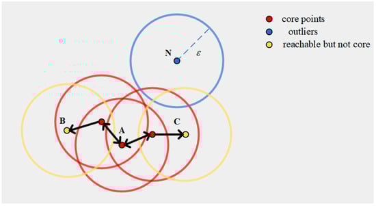 There are several definitions of our DBSCAN algorithm. The relationship between the outliers and core points is shown in Figure 5.