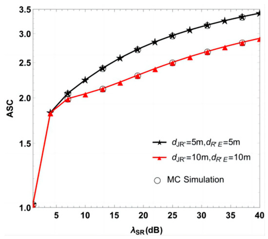 Another crucial indicator for evaluating the active eavesdropping secrecy performance is the ASC, whose expression is as follows [18]: