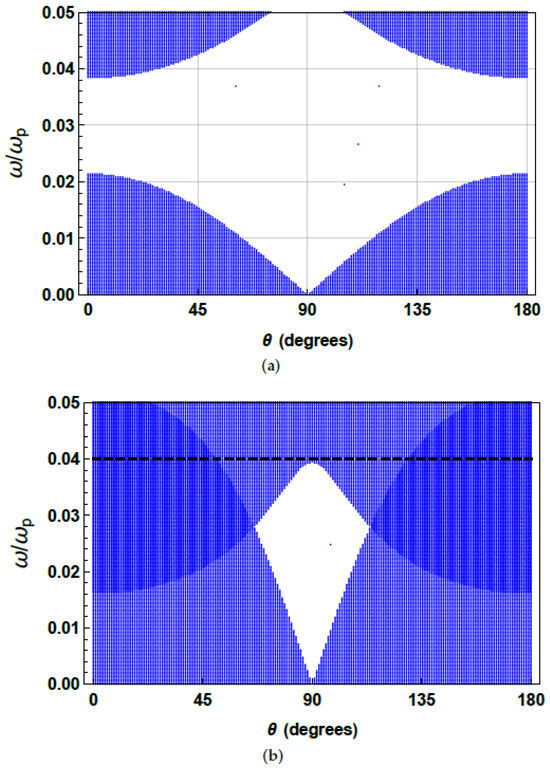 Figure 3b displays the photonic band structure when the strength of the external magnetic field is 0.4 T. Unlike the previous figure, one can see the region from the frequency which approximately equals