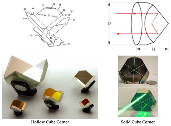 The first successful Satellite Laser Ranging (SLR) experiment was carried out on 31 October 1964 by Dr. Henry H. Plotkin and his team at the NASA Goddard Space Flight Center in Greenbelt, Maryland, USA []. In this first experiment, the NASA Explorer 22B satellite was equipped with an array of retroreflectors designed to reflect laser pulses from a ground station back to their point of origin. The roundtrip distance to the satellite can then be determined by multiplying the roundtrip transit time by the speed of light. In 1969, a team led by Prof. Carroll Alley of the University of Maryland succeeded in ranging to a flat panel of 100 retroreflectors left on the lunar surface by NASA’s Apollo 11 crew []. In the almost six decades since these early experiments, dozens of Earth-orbiting satellites carrying retroreflector arrays have been launched to support a wide variety of scientific investigations, and five arrays have been placed on the lunar surface by three manned US Apollo missions (11, 14, and 15) and two unmanned Soviet Lunakhod (17 and 21) missions carrying arrays provided by France. The present author has previously published a comprehensive review of the active ground-based SLR hardware and operations [], whereas this paper will concentrate on the requirements placed on the passive spaceborne segment, i.e., the retroreflector arrays. For a more complete discussion of recent SLR capabilities and trends, the reader is referred to the following reviews [,].