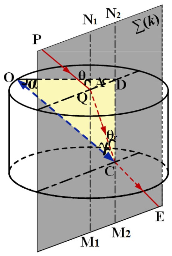 is the angle between the incident plane and the electric displacement vector of refractive light, which can be written as the following equation based on the properties of uniaxial crystals.