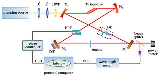 For most wide-band tunable lasers, the wavelength tunings are always realized by manually adjusting the rotation angle of BRF. In 2017, Su et al. designed an automatic and broad tuning procedure based on the control of LabVIEW in continuous-wave single-frequency Ti:sapphire laser, which greatly simplified its operation [72].