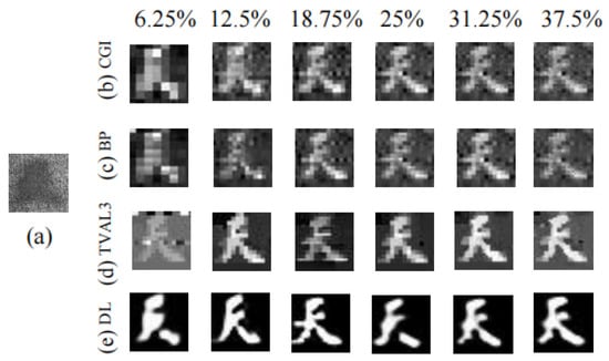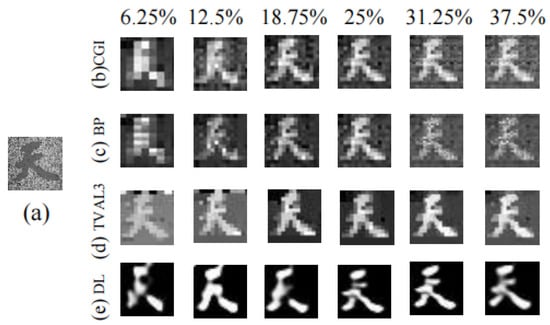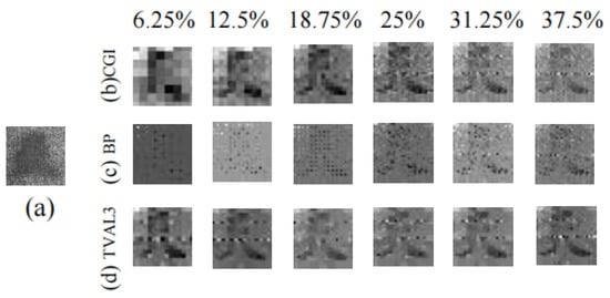 - Duarte, M.F.; Davenport, M.A.; Takhar, D.; Laska, J.N.; Sun, T.; Kelly, K.F.; Baraniuk, R.G. Single-pixel imaging via compressive sampling. IEEE Signal Process. Mag. 2008, 25, 83–91. [Google Scholar] [CrossRef]