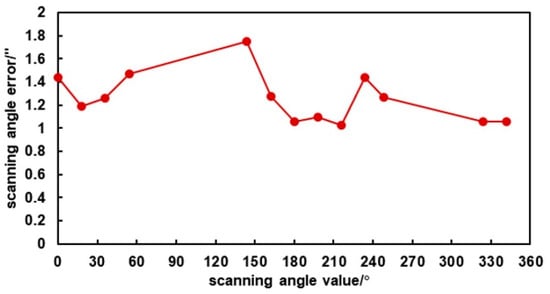 The scanning angle measurement error was analyzed by the reference angle expressed as Equation (17):
