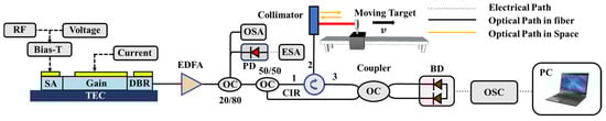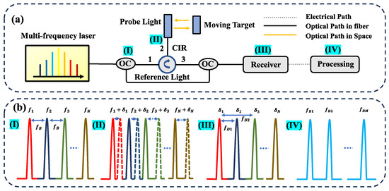 - Bai, Y.; Ren, D.; Zhao, W.; Qu, Y.; Qian, L.; Chen, Z. Heterodyne Doppler Velocity Measurement of Moving Targets by Mode-Locked Pulse Laser. Opt. Express 2012, 20, 764–768. [Google Scholar] [CrossRef] [PubMed]
