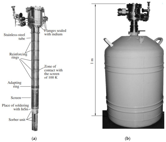 - Vdovin, V.F. Problems of cryogenic cooling of superconductor and semiconductor receivers in the range 0.1–1 THz. Radiophys. Quantum Electron. 2005, 48, 779–791. [Google Scholar] [CrossRef]