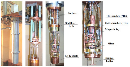 - Edelman, V.S. A continuously operating dilution microcryostat. Instrum. Exp. Tech. 2012, 55, 145–148. [Google Scholar] [CrossRef]