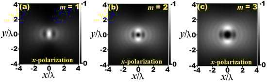 - Kotlyar, V.V.; Kovalev, A.A.; Stafeev, S.S.; Nalimov, A.G.; Rasouli, S. Tightly focusing vector beams containing V-point polarization singularities. Opt. Laser Technol. 2022, 145, 107479. [Google Scholar] [CrossRef]