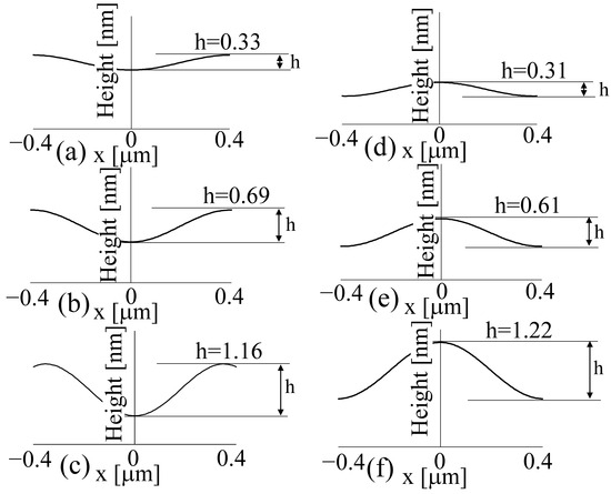 This indicates that the protruding shape of the measured object is easier to detect. However, the results shown in Figure 12 and Figure 13 are the results of calculations based on simulations, which resulted in the detection of lengths below the nm level.