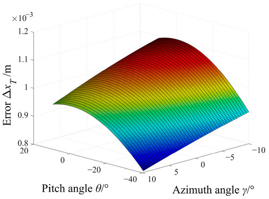 To analyze the change trend of the errors with pitch and azimuth, the following equations can be obtained by inversely solving t13 and t15, which are, respectively,