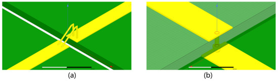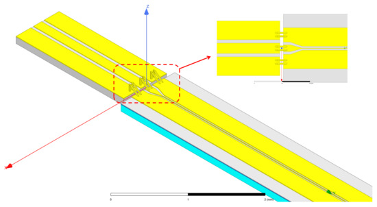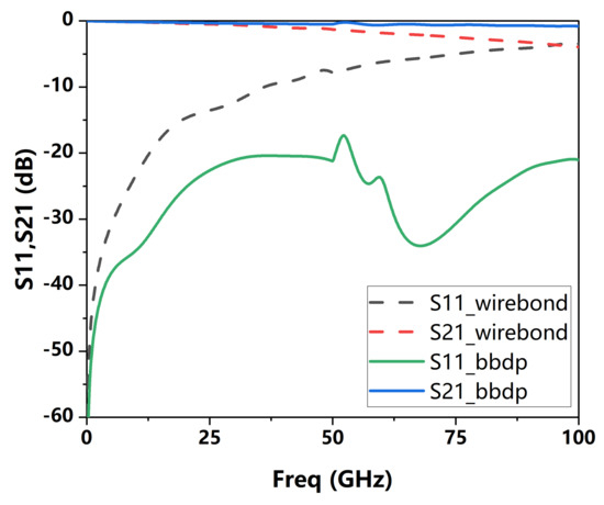 In order to compare the above results of the BBDP structure, we also performed the S parameter simulations of the wire-bonded modulator for an RF interconnection structure. We referred to a structure in the literature for simulation [19], as shown in Figure 10. The parameters of the structure are available in the references.