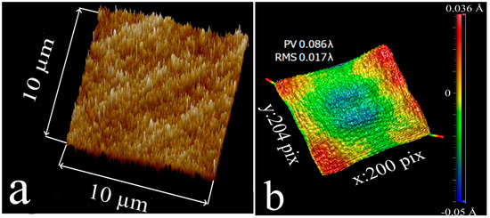 Patterns of the roughness and flatness of the ZGP elements, registered by a ZYGO interferometer, surface relief (a); surface roughness (b) (adapted from [48]).