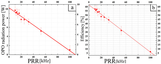 Periodically pulsed sources of powerful coherent mid-infrared (mid-IR) radiation have a wide range of applications in many areas of science and technology. In particular, frequency converters operating in the 3.5–5 μm and 8–12 μm wavelength ranges are promising for optical communications in the atmosphere within the framework of global 6G-generation information transmission systems [1]. Sources of coherent mid-IR radiation are also used for processing materials (glasses, ceramics, or semiconductors) by scribing and thermal splitting [2,3] and in medicine, during disease diagnosis using gas analysis and the resonant ablation of biological tissues due to their strong water and collagen absorptions [4,5,6,7,8,9]. Sources of coherent radiation capable of generating powerful pulsed radiation in the 3.5–5 μm wavelength range are relevant for the creation of lidar systems based on the method of differential absorption for greenhouse gas emission control (since the most intense absorption lines of most greenhouse gases lie in this spectral range) [10,11,12,13]. One of the most efficient solid-state sources of coherent radiation in the mid-IR range are optical parametric oscillators (OPOs) and optical parametric generators and amplifiers (OPGs and OPAs).