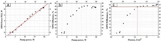 Further studies, which were carried out with a pumping fluence of 0.9 J/cm2 (which was two times less than the ZGP LIDT), registered a stable OPO operation for more than 6 min (this operation time was limited only by the thermal management of the system). If the pump fluence was more than 1.3 J/cm2, when the darkening was observed, the OPO operation time was limited by the LID that occurred after 30 s.