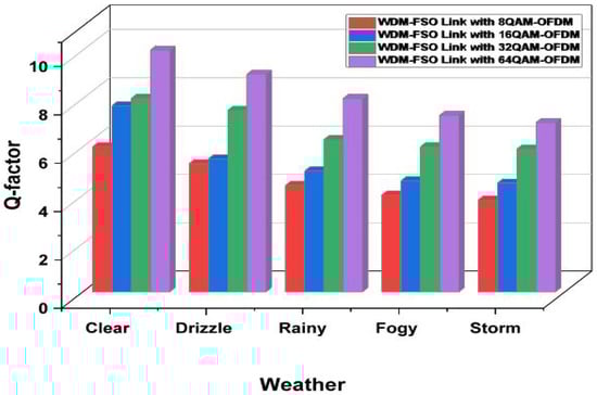 Weather conditions vs. Q-factor simulation investigations for different modulation formats.