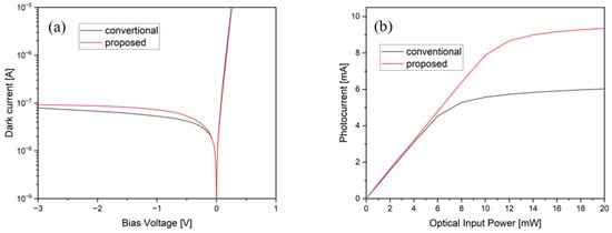 - Williams, K.J.; Esman, R.D. Design considerations for high-current photodetectors. J. Light. Technol. 1999, 17, 1443. [Google Scholar] [CrossRef]