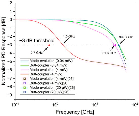 - Chen, G.; Yu, Y.; Xiao, X.; Zhang, X. High speed and high power polarization insensitive germanium photodetector with lumped structure. Opt. Express 2016, 24, 10030–10039. [Google Scholar] [CrossRef]