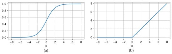 Activation functions: (a) sigmoid and (b) ReLU.