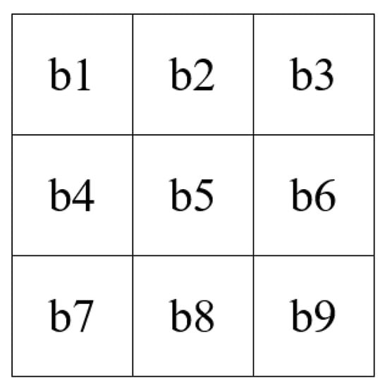 The structural elements of the MM are actually grayscale within a tiny window, and their selection directly affects the final result. For the general window size, 3 × 3, 5 × 5, 7 × 7 are used, among which the 3 × 3 window has the fastest calculation speed and the finest edge extraction; thus, 3 × 3 is chosen as the structure element in this paper. As shown in Figure 1.