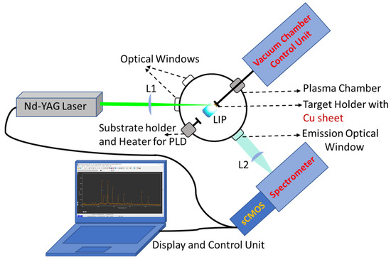 - Hafez, M.A.; Khedr, M.A.; Elaksher, F.F.; Gamal, Y.E. Characteristics of Cu Plasma Produced by a Laser Interaction with a Solid Target. Plasma Sources Sci. Technol. 2003, 12, 185–198. [Google Scholar] [CrossRef]