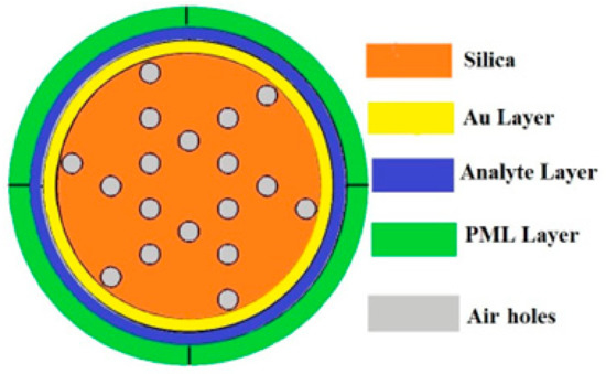 Cross-section schematic of proposed PCF-SPR biosensor.