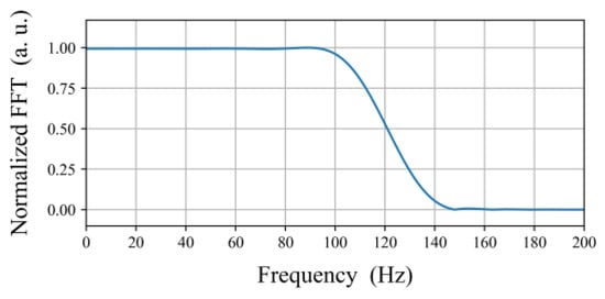As mentioned in Section 2.3.3, the order of the low-pass filter was N = 141. However, for , the demodulator estimator presents a signal behavior that is in phase, and the maximum and minimum values are correctly estimated. Figure 9 shows that the proposed FPGA-based interrogator detects the frequencies of interest of 200, 100 Hz, and its harmonics.