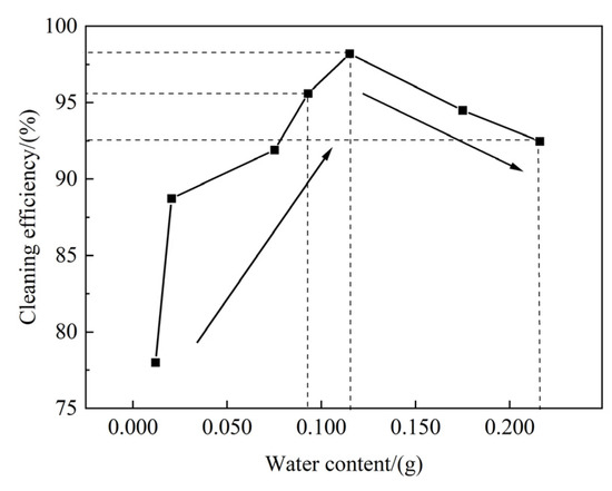 4.4. The Effect of Water Content on Cleaning Efficiency