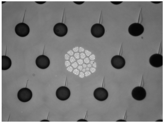 Optical micrograph of the core region of a fiber preform, showing 425 small doped regions within the core. Pitch . [Reprinted/Adapted] with permission from [78] © The Optical Society.