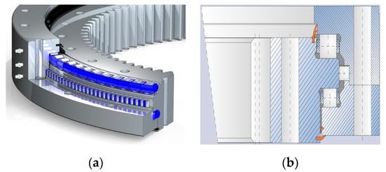 - He, P.; Liu, R.; Hong, R.; Wang, H.; Yang, G.; Lu, C. Hardened raceway calculation analysis of a three-row roller slewing bearing. Int. J. Mech. Sci. 2018, 137, 133–144. [Google Scholar] [CrossRef]