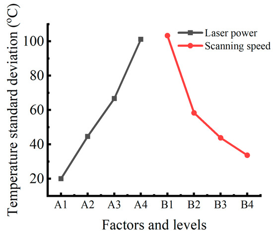 | No | A: Laser Power P (W) | B: Scanning Speed v (mm/s) | Hardened Layer Width (mm) | Hardened Layer Depth (mm) | Temperature Standard Deviation | ||