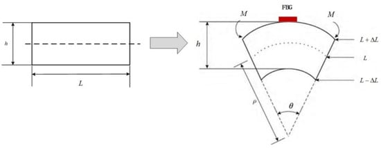 We assumed that is the length of the element, is the change of the length of the structural element, is the radius of curvature, and is the center angle of the arc, as shown in Figure 2. The following equations can be obtained:
