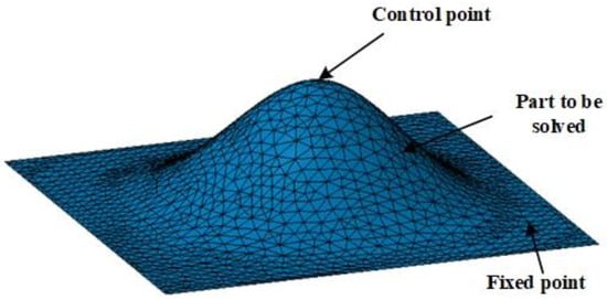 As shown in Figure 8, the model mesh deformation was divided into three parts: the fixed part, the part to be solved and the known control point part. The essence of Laplacian deformation is to solve the coordinates of the part to be solved according to the fixed part and the known control point coordinates by modifying the control point coordinates.