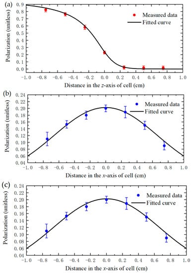 - Measuring the one-dimensional polarization distribution of the x, y, and z axes with 0.1 cm resolution. The measurement results were consistent with the Lambert–Beer absorption law and the Gaussian distribution law.