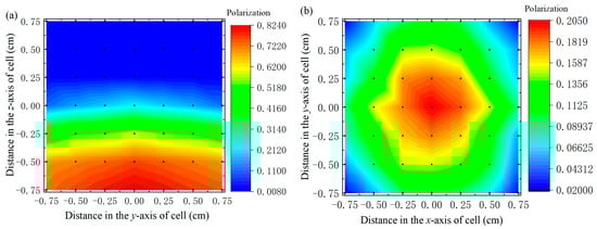 - Two-dimensional spatial distribution measurements of the polarization of the xy and yz planes with a measurement range of 0.75 cm2 × 0.75 cm2. The nonuniformity of the xy plane was 1.04, and that of the yz plane was 1.82.