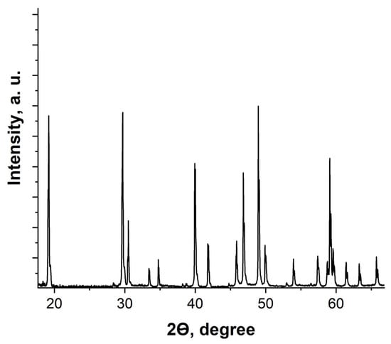 The sample phase composition was confirmed via method of X-ray diffraction (XRD). In particular, the XRD pattern of the Nd3+ (0.3 mol.%),Yb3+(1.0 mol.%):LiYF4 sample is shown in Figure 1.