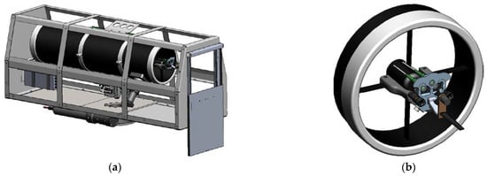 The instrument’s mechanical design must be adapted to overcome various challenges that arise from its remote operation. These challenges are imposed by the constraints from the installation location and the selection of the measurement orientation, as well as the need to protect the instrument from environmental conditions. The device has an envelope of 1.45 m × 0.5 m × 0.45 m, an approximate weight of 70 kg, and was fully modeled in 3D (Figure 2).