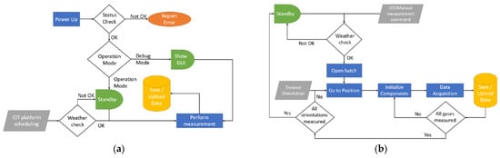 Flowcharts (a) for the device operation (b) for the measurement procedure.