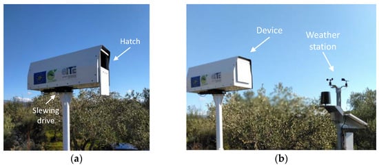 Image (a) of the device with (b) the weather station installed in Kato Valsamonero, Crete, Greece.