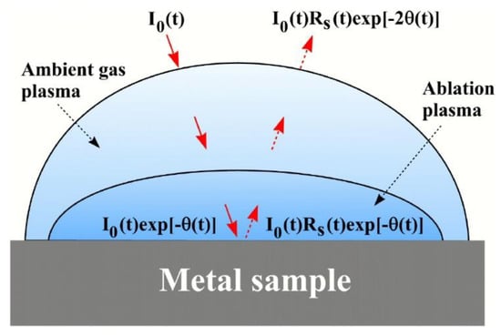 In general, the total wavelength effect on the light reflection in the ablation depends on both the laser light absorption in the surface layer of the sample and in the plasma. The reflectivity wavelength dependence on the surface layer is described by the Fresnel and Drude formulae []. For a smooth, flat, and clean surface, the reflectivity is given by: