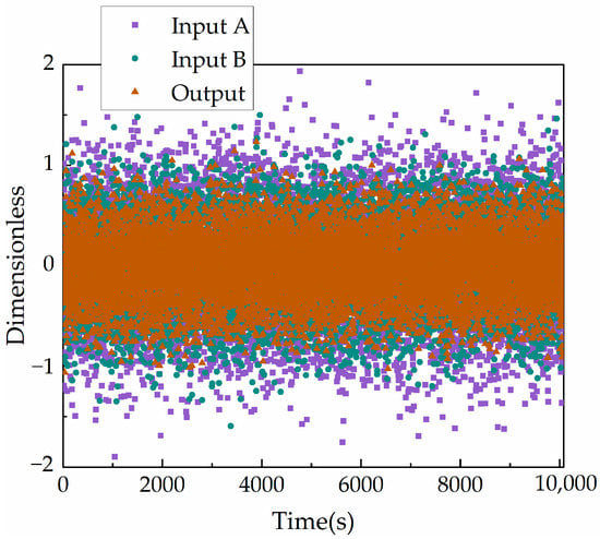 To test the effectiveness of the data fusion algorithm that relied on KF, we conducted a simple simulation. During the simulation, the standard deviations of inputs A and B are 0.5 and 0.4, respectively.