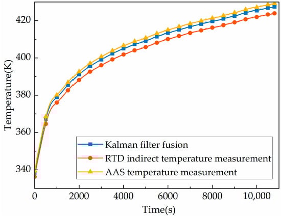 25]. It is difficult to establish an accurate mathematical model of the internal dynamic temperature of a cell. Whether the internal dynamic temperature of the cell is extrapolated from RTD measurements or measured by AAS, there will always be unmeasurable errors. Therefore, the use of a KF for data fusion is very appropriate.