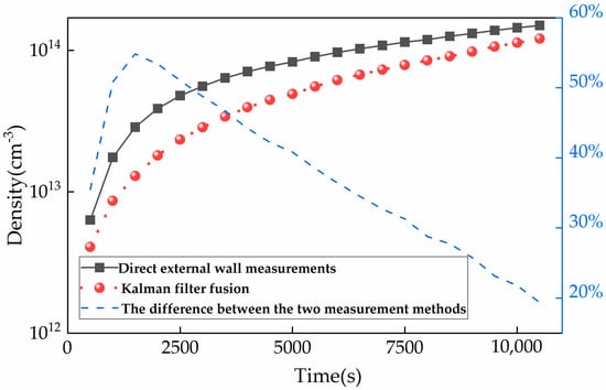 Figure 7, the atomic vapor density calculated from the temperature values obtained by fusing the KF data is approximately 37% lower on average than the corresponding values from conventional external wall temperature measurements. This finding is consistent with the results of other studies on calculating atomic vapor density [