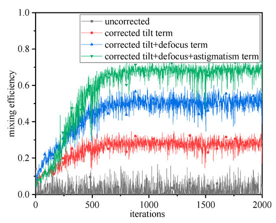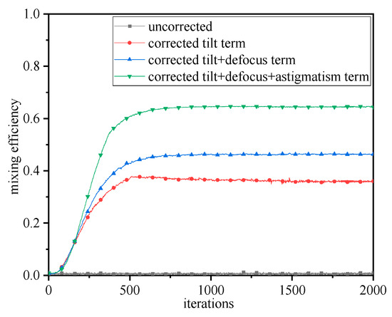 3.1. Effect of Wavefront Distortion on Mixing Efficiency