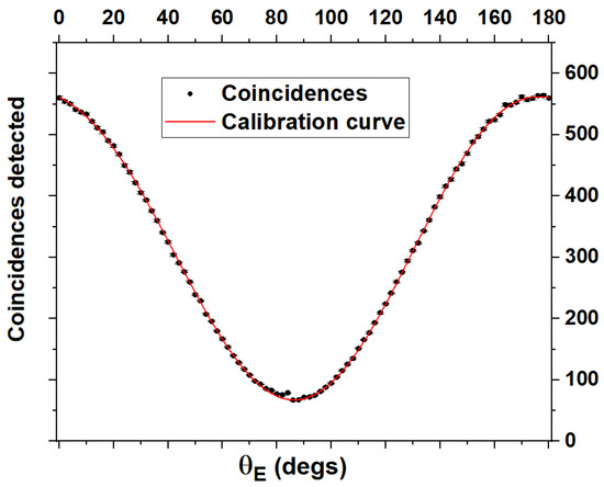 The coincidence counts in correspondence with each HWP angle have been averaged over the 100 loops, and plotted in Figure 3 with their uncertainty (standard deviation over square root of loops number). To calibrate the sensor, the following polynomial function has been employed: