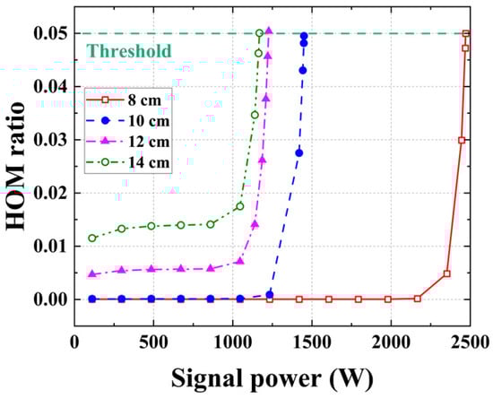 - Smith, A.V.; Smith, J.J.; Ramachandran, S. Raising the mode instability thresholds of fiber amplifiers. In Fiber Lasers XI: Technology, Systems, and Applications; SPIE: San Francisco, CA, USA, 2014. [Google Scholar]